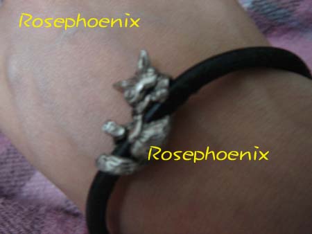 我送樹兒的是上面盤了一隻銀貓咪的皮手環,