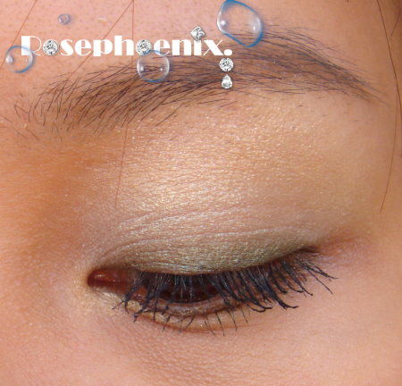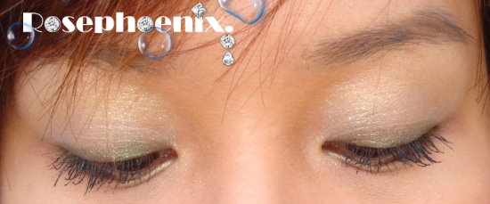 4、小圓刷沾取偏光黃金色B打亮眼頭,並用圓鬆刷從眉骨往下暈到眼窩