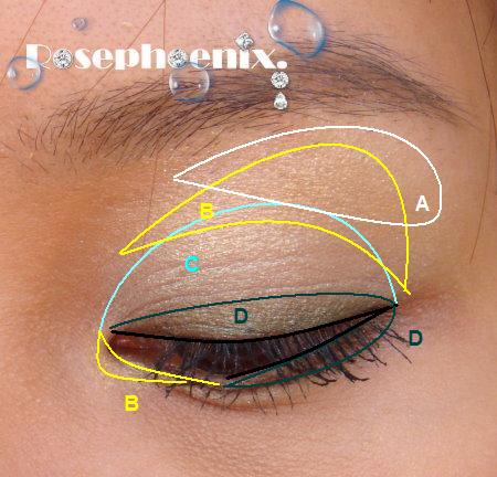 3、最深色D塗在眼摺,並用它畫下眼線的後段2/3