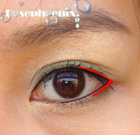 原本就有畫上眼線,但眼尾大約1/4~1/3這一段我會加重(如紅色線),