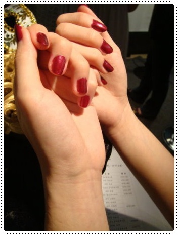這個帶著金色&紫紅光澤的深紅色指甲油,