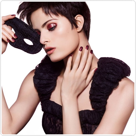 將酒紅或緞黑色單獨層疊暈染於眼瞼部位,呈現強烈的漆彩效果,打造出成熟嫵媚或舞台戲劇妝效。