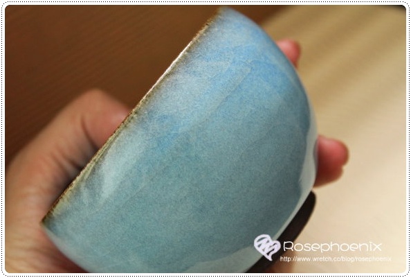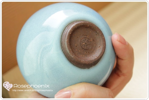 而茶碗內的天青色澤則亮麗的如同晴空一般~