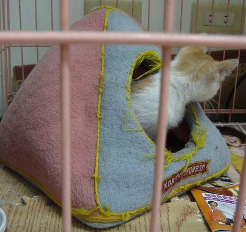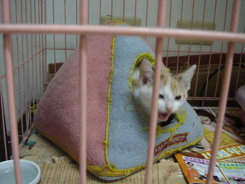 聽說是主人搬家就丟在舊屋裡,個性很溫馴,我想牠應該能很快的被送出去吧!