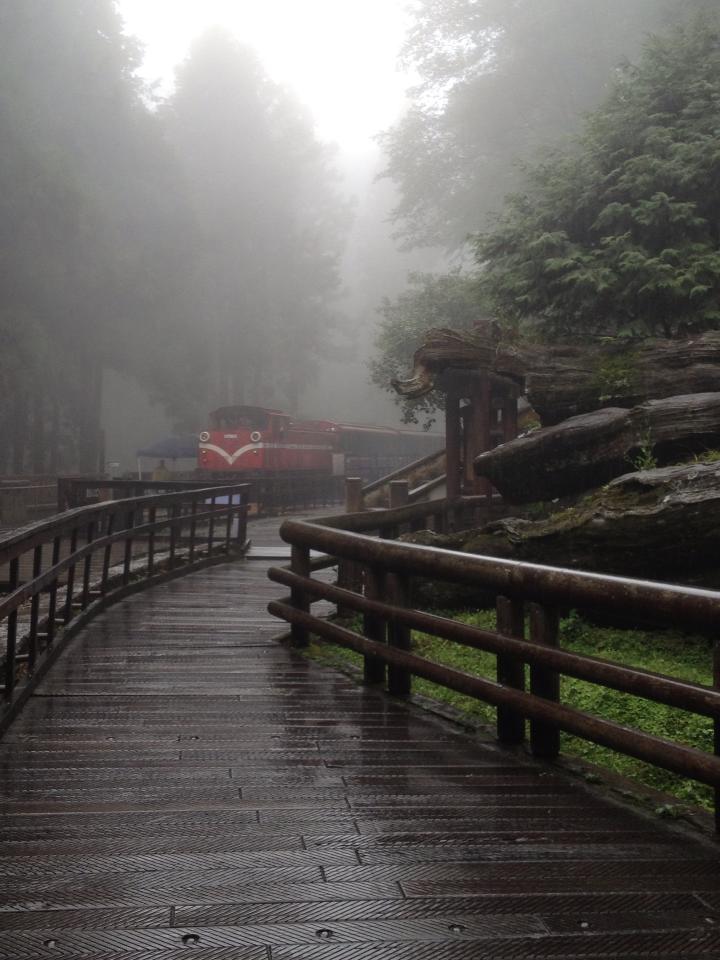 但阿里山上就是起霧,飄點小雨,散起步來還挺浪漫的。