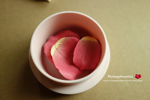 有著玫瑰花的香氣、玫瑰花瓣應有的紋理,然後似乎是沾著腮紅粉末,