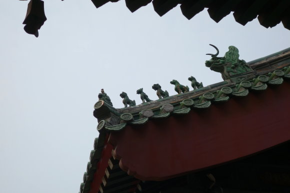 雍和宮的琉璃瓦和屋角神獸都是明黃色的,充滿了皇室風格。