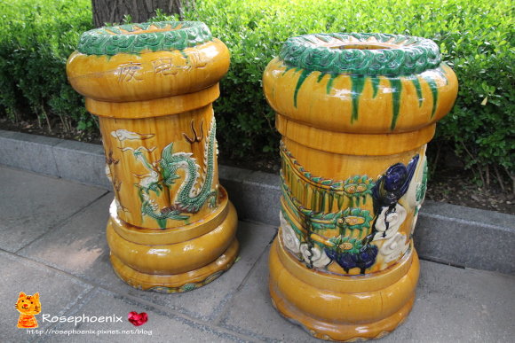 大陸的垃圾桶、路燈都會儘可能的與該地的文化、古蹟融合,